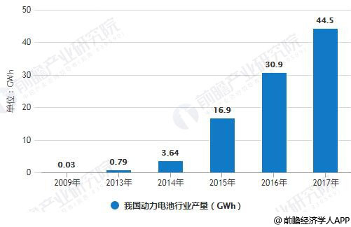 In recent years, the output of power battery industry in China has developed rapidly. According to the statistical data of "China Power Battery PACK Industry Development Prospect Forecast and Investment Strategic Planning Analysis Report" issued by Prospective Industry Research Institute, the output of China's power battery industry in 2009 was only 0.03GWh. In 2014, China's power battery industry output reached 3.64GWh. By 2016, the output of China's power battery industry exceeded 30GWh, and by 2017, the output of China's power battery industry reached 44.5GWh.